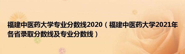大家好,小高來為大家解答以上問題。福建中醫(yī)藥大學(xué)專業(yè)分?jǐn)?shù)線2020,福建中醫(yī)藥大學(xué)2021年各省錄取分?jǐn)?shù)線及專業(yè)分?jǐn)?shù)線很多人還不知道,現(xiàn)在讓我們一起來看看吧!