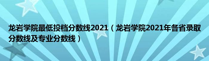 大家好,小高來為大家解答以上問題。龍巖學(xué)院最低投檔分數(shù)線2021,龍巖學(xué)院2021年各省錄取分數(shù)線及專業(yè)分數(shù)線很多人還不知道,現(xiàn)在讓我們一起來看看吧!