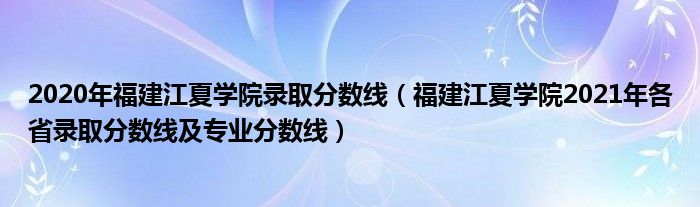 大家好,小高來(lái)為大家解答以上問(wèn)題。2020年福建江夏學(xué)院錄取分?jǐn)?shù)線,福建江夏學(xué)院2021年各省錄取分?jǐn)?shù)線及專業(yè)分?jǐn)?shù)線很多人還不知道,現(xiàn)在讓我們一起來(lái)看看吧!