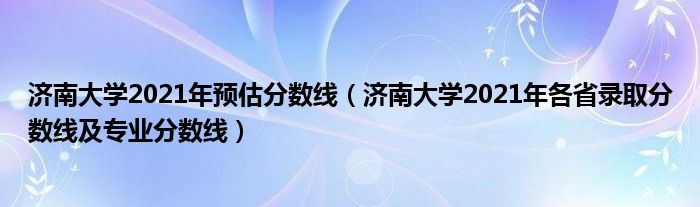 大家好,小高來為大家解答以上問題。濟(jì)南大學(xué)2021年預(yù)估分?jǐn)?shù)線,濟(jì)南大學(xué)2021年各省錄取分?jǐn)?shù)線及專業(yè)分?jǐn)?shù)線很多人還不知道,現(xiàn)在讓我們一起來看看吧!