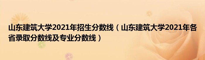 大家好,小高來為大家解答以上問題。山東建筑大學(xué)2021年招生分?jǐn)?shù)線,山東建筑大學(xué)2021年各省錄取分?jǐn)?shù)線及專業(yè)分?jǐn)?shù)線很多人還不知道,現(xiàn)在讓我們一起來看看吧!