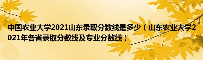 大家好,小高來(lái)為大家解答以上問(wèn)題。中國(guó)農(nóng)業(yè)大學(xué)2021山東錄取分?jǐn)?shù)線是多少,山東農(nóng)業(yè)大學(xué)2021年各省錄取分?jǐn)?shù)線及專業(yè)分?jǐn)?shù)線很多人還不知道,現(xiàn)在讓我們一起來(lái)看看吧!