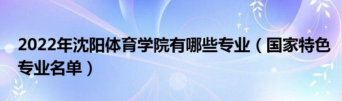 大家好,小高來為大家解答以上問題。2022年沈陽體育學(xué)院有哪些專業(yè),國(guó)家特色專業(yè)名單很多人還不知道,現(xiàn)在讓我們一起來看看吧!
