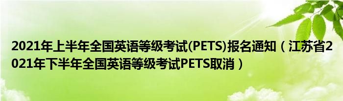 大家好,小高來為大家解答以上問題。2021年上半年全國英語等級考試(PETS)報名通知,江蘇省2021年下半年全國英語等級考試PETS取消很多人還不知道,現(xiàn)在讓我們一起來看看吧!