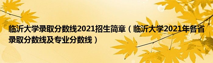 大家好,小高來為大家解答以上問題。臨沂大學(xué)錄取分?jǐn)?shù)線2021招生簡章,臨沂大學(xué)2021年各省錄取分?jǐn)?shù)線及專業(yè)分?jǐn)?shù)線很多人還不知道,現(xiàn)在讓我們一起來看看吧!