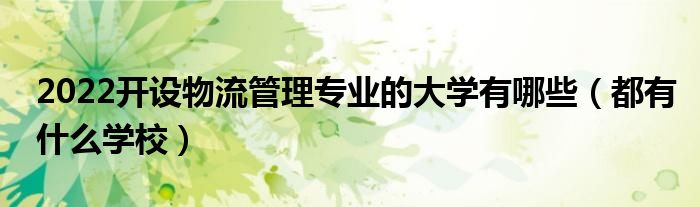 大家好,小高來為大家解答以上問題。2022開設物流管理專業(yè)的大學有哪些,都有什么學校很多人還不知道,現(xiàn)在讓我們一起來看看吧!