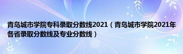 大家好,小高來為大家解答以上問題。青島城市學(xué)院??其浫》?jǐn)?shù)線2021,青島城市學(xué)院2021年各省錄取分?jǐn)?shù)線及專業(yè)分?jǐn)?shù)線很多人還不知道,現(xiàn)在讓我們一起來看看吧!