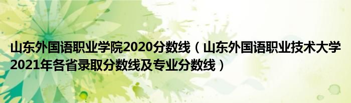 大家好,小高來為大家解答以上問題。山東外國語職業(yè)學院2020分數(shù)線,山東外國語職業(yè)技術(shù)大學2021年各省錄取分數(shù)線及專業(yè)分數(shù)線很多人還不知道,現(xiàn)在讓我們一起來看看吧!