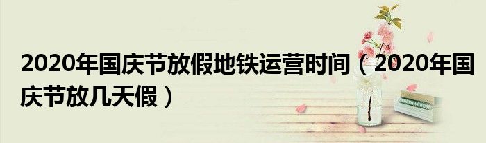 大家好,小高來為大家解答以上問題。2020年國慶節(jié)放假地鐵運(yùn)營時(shí)間,2020年國慶節(jié)放幾天假很多人還不知道,現(xiàn)在讓我們一起來看看吧!