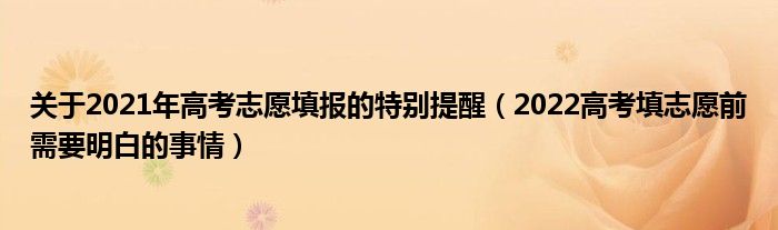 大家好,小高來為大家解答以上問題。關(guān)于2021年高考志愿填報的特別提醒,2022高考填志愿前需要明白的事情很多人還不知道,現(xiàn)在讓我們一起來看看吧!