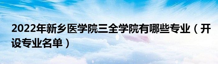 大家好,小高來為大家解答以上問題。2022年新鄉(xiāng)醫(yī)學院三全學院有哪些專業(yè),開設專業(yè)名單很多人還不知道,現(xiàn)在讓我們一起來看看吧!