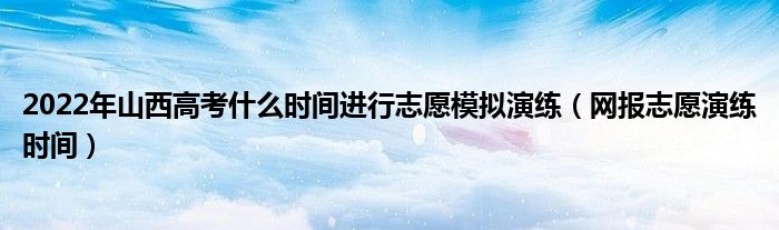 大家好,小高來為大家解答以上問題。2022年山西高考什么時(shí)間進(jìn)行志愿模擬演練,網(wǎng)報(bào)志愿演練時(shí)間很多人還不知道,現(xiàn)在讓我們一起來看看吧!
