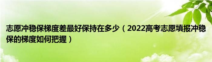 大家好,小高來(lái)為大家解答以上問(wèn)題。志愿沖穩(wěn)保梯度差最好保持在多少,2022高考志愿填報(bào)沖穩(wěn)保的梯度如何把握很多人還不知道,現(xiàn)在讓我們一起來(lái)看看吧!