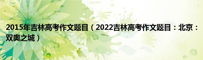 大家好,小高來為大家解答以上問題。2015年吉林高考作文題目,2022吉林高考作文題目:北京:雙奧之城很多人還不知道,現在讓我們一起來看看吧!