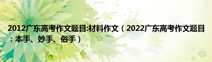 大家好,小高來為大家解答以上問題。2012廣東高考作文題目:材料作文,2022廣東高考作文題目:本手、妙手、俗手很多人還不知道,現(xiàn)在讓我們一起來看看吧!