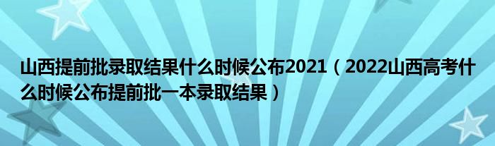 大家好,小高來為大家解答以上問題。山西提前批錄取結(jié)果什么時(shí)候公布2021,2022山西高考什么時(shí)候公布提前批一本錄取結(jié)果很多人還不知道,現(xiàn)在讓我們一起來看看吧!