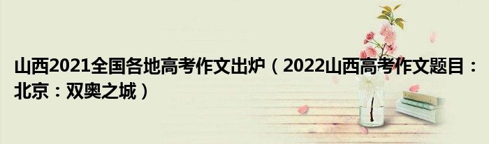 大家好,小高來為大家解答以上問題。山西2021全國各地高考作文出爐,2022山西高考作文題目:北京:雙奧之城很多人還不知道,現(xiàn)在讓我們一起來看看吧!