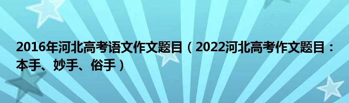 大家好,小高來(lái)為大家解答以上問(wèn)題。2016年河北高考語(yǔ)文作文題目,2022河北高考作文題目:本手、妙手、俗手很多人還不知道,現(xiàn)在讓我們一起來(lái)看看吧!