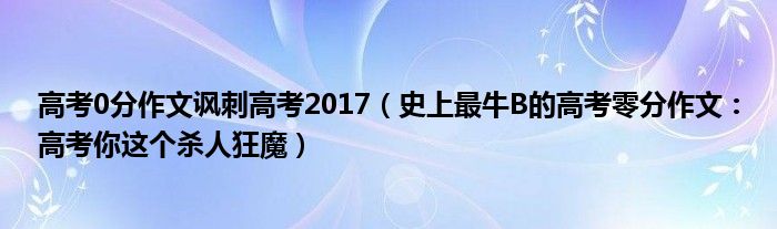 大家好,小高來(lái)為大家解答以上問(wèn)題。高考0分作文諷刺高考2017,史上最牛B的高考零分作文:高考你這個(gè)殺人狂魔很多人還不知道,現(xiàn)在讓我們一起來(lái)看看吧!