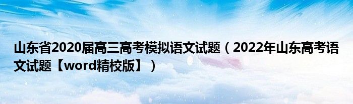 大家好,小高來(lái)為大家解答以上問(wèn)題。山東省2020屆高三高考模擬語(yǔ)文試題,2022年山東高考語(yǔ)文試題【word精校版】很多人還不知道,現(xiàn)在讓我們一起來(lái)看看吧!
