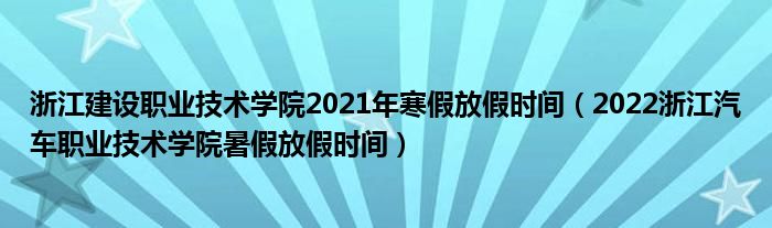 大家好,小高來為大家解答以上問題。浙江建設(shè)職業(yè)技術(shù)學(xué)院2021年寒假放假時間,2022浙江汽車職業(yè)技術(shù)學(xué)院暑假放假時間很多人還不知道,現(xiàn)在讓我們一起來看看吧!
