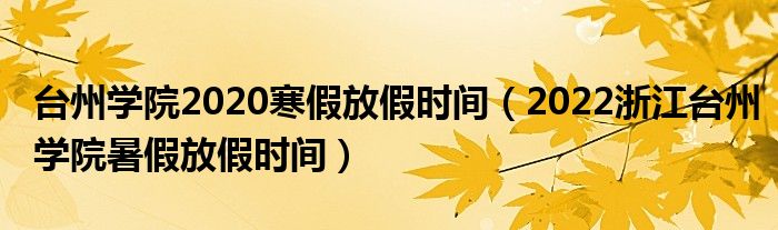 大家好,小高來(lái)為大家解答以上問(wèn)題。臺(tái)州學(xué)院2020寒假放假時(shí)間,2022浙江臺(tái)州學(xué)院暑假放假時(shí)間很多人還不知道,現(xiàn)在讓我們一起來(lái)看看吧!
