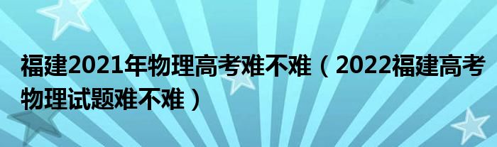 大家好,小高來(lái)為大家解答以上問(wèn)題。福建2021年物理高考難不難,2022福建高考物理試題難不難很多人還不知道,現(xiàn)在讓我們一起來(lái)看看吧!