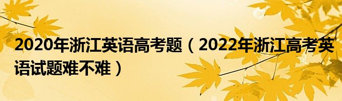 大家好,小高來為大家解答以上問題。2020年浙江英語高考題,2022年浙江高考英語試題難不難很多人還不知道,現(xiàn)在讓我們一起來看看吧!