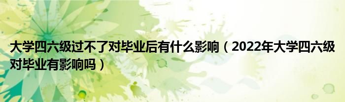 大家好,小高來為大家解答以上問題。大學(xué)四六級(jí)過不了對(duì)畢業(yè)后有什么影響,2022年大學(xué)四六級(jí)對(duì)畢業(yè)有影響嗎很多人還不知道,現(xiàn)在讓我們一起來看看吧!