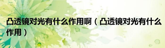 大家好,小高來為大家解答以上問題。凸透鏡對光有什么作用啊,凸透鏡對光有什么作用很多人還不知道,現(xiàn)在讓我們一起來看看吧!