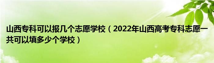 大家好,小高來為大家解答以上問題。山西??瓶梢詧髱讉€志愿學校,2022年山西高考專科志愿一共可以填多少個學校很多人還不知道,現(xiàn)在讓我們一起來看看吧!