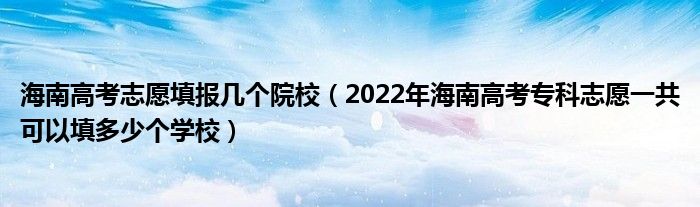 大家好,小高來(lái)為大家解答以上問(wèn)題。海南高考志愿填報(bào)幾個(gè)院校,2022年海南高考??浦驹敢还部梢蕴疃嗌賯€(gè)學(xué)校很多人還不知道,現(xiàn)在讓我們一起來(lái)看看吧!