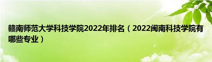 大家好,小高來為大家解答以上問題。贛南師范大學(xué)科技學(xué)院2022年排名,2022閩南科技學(xué)院有哪些專業(yè)很多人還不知道,現(xiàn)在讓我們一起來看看吧!
