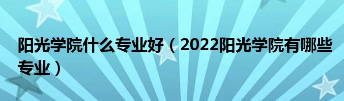 大家好,小高來為大家解答以上問題。陽光學(xué)院什么專業(yè)好,2022陽光學(xué)院有哪些專業(yè)很多人還不知道,現(xiàn)在讓我們一起來看看吧!