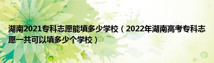 大家好,小高來(lái)為大家解答以上問(wèn)題。湖南2021專科志愿能填多少學(xué)校,2022年湖南高考??浦驹敢还部梢蕴疃嗌賯€(gè)學(xué)校很多人還不知道,現(xiàn)在讓我們一起來(lái)看看吧!