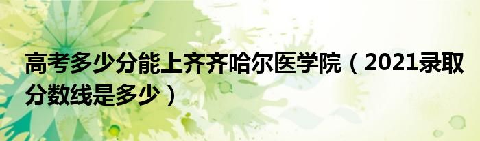 大家好,小高來為大家解答以上問題。高考多少分能上齊齊哈爾醫(yī)學(xué)院,2021錄取分數(shù)線是多少很多人還不知道,現(xiàn)在讓我們一起來看看吧!