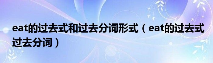 大家好,小高來為大家解答以上問題。eat的過去式和過去分詞形式,eat的過去式過去分詞很多人還不知道,現(xiàn)在讓我們一起來看看吧!
