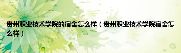 一、貴州職業(yè)技術(shù)學(xué)院宿舍條件