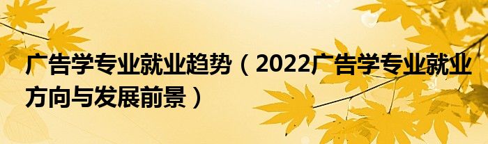 大家好,小高來為大家解答以上問題。廣告學(xué)專業(yè)就業(yè)趨勢,2022廣告學(xué)專業(yè)就業(yè)方向與發(fā)展前景很多人還不知道,現(xiàn)在讓我們一起來看看吧!
