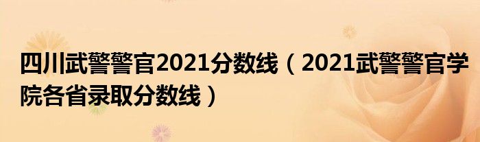 大家好,小高來為大家解答以上問題。四川武警警官2021分?jǐn)?shù)線,2021武警警官學(xué)院各省錄取分?jǐn)?shù)線很多人還不知道,現(xiàn)在讓我們一起來看看吧!