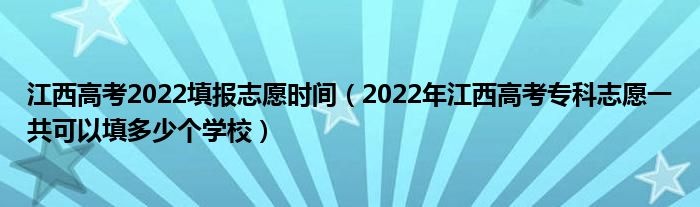 大家好,小高來為大家解答以上問題。江西高考2022填報志愿時間,2022年江西高考??浦驹敢还部梢蕴疃嗌賯€學(xué)校很多人還不知道,現(xiàn)在讓我們一起來看看吧!