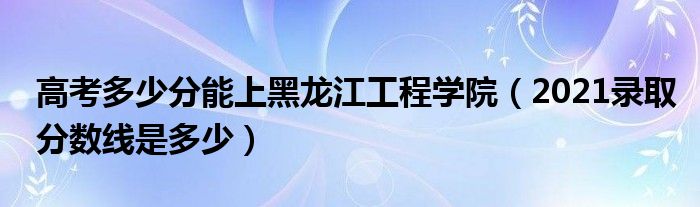大家好,小高來為大家解答以上問題。高考多少分能上黑龍江工程學(xué)院,2021錄取分數(shù)線是多少很多人還不知道,現(xiàn)在讓我們一起來看看吧!
