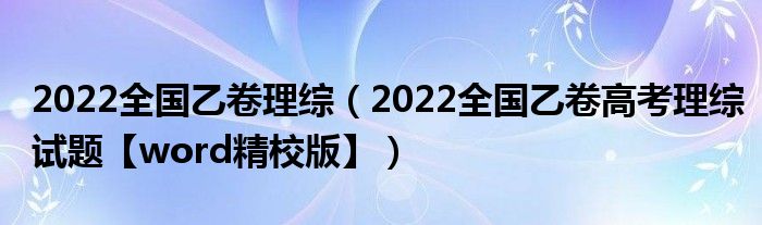 大家好,小高來為大家解答以上問題。2022全國乙卷理綜,2022全國乙卷高考理綜試題【word精校版】很多人還不知道,現(xiàn)在讓我們一起來看看吧!