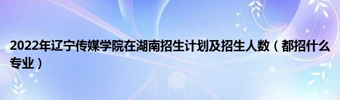 大家好,小高來(lái)為大家解答以上問(wèn)題。2022年遼寧傳媒學(xué)院在湖南招生計(jì)劃及招生人數(shù),都招什么專業(yè)很多人還不知道,現(xiàn)在讓我們一起來(lái)看看吧!