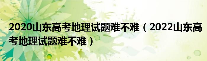大家好,小高來(lái)為大家解答以上問(wèn)題。2020山東高考地理試題難不難,2022山東高考地理試題難不難很多人還不知道,現(xiàn)在讓我們一起來(lái)看看吧!