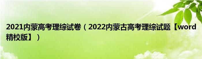 大家好,小高來為大家解答以上問題。2021內(nèi)蒙高考理綜試卷,2022內(nèi)蒙古高考理綜試題【word精校版】很多人還不知道,現(xiàn)在讓我們一起來看看吧!