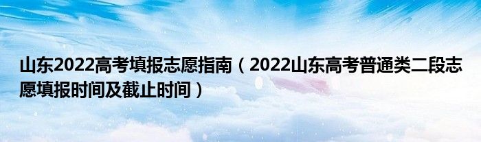 大家好,小高來為大家解答以上問題。山東2022高考填報(bào)志愿指南,2022山東高考普通類二段志愿填報(bào)時(shí)間及截止時(shí)間很多人還不知道,現(xiàn)在讓我們一起來看看吧!