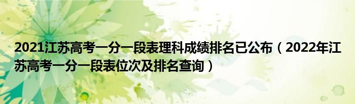 大家好,小高來為大家解答以上問題。2021江蘇高考一分一段表理科成績排名已公布,2022年江蘇高考一分一段表位次及排名查詢很多人還不知道,現(xiàn)在讓我們一起來看看吧!