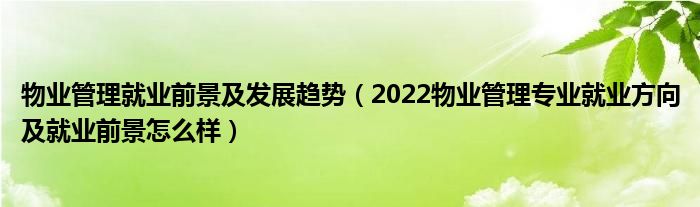 2022物業(yè)管理專業(yè)就業(yè)形勢分析