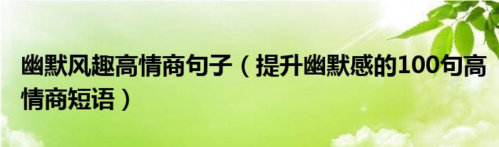 大家好,小高來為大家解答以上問題。幽默風(fēng)趣高情商句子,提升幽默感的100句高情商短語很多人還不知道,現(xiàn)在讓我們一起來看看吧!